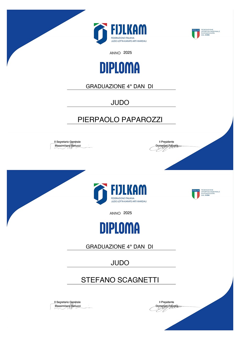 Oltre 50 i candidati provenienti da tutta Italia e, per la nostra ASD, gli insegnanti tecnici Pierpaolo e Stefano hanno superato le numerose prove, sia teoriche che pratiche, eseguendo i due Kata previsti, oltre alla dimostrazione di tecniche scelte dalla Commissione e discutendo di argomenti Federali.